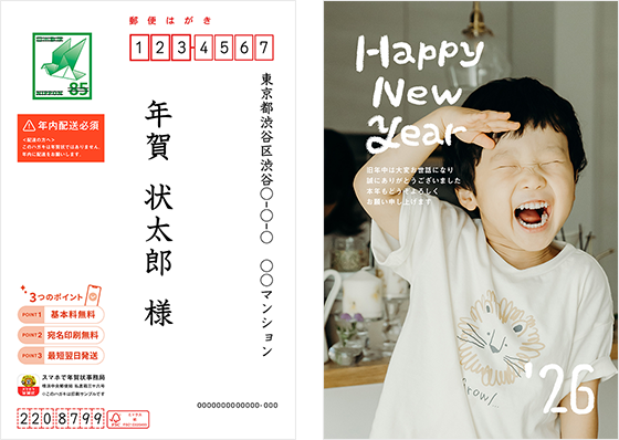 ※土日・祝日は郵便はがきの配達が行われないため、お届けにお時間がかかる場合があります。